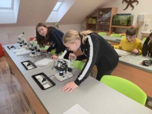 Poté měli možnost prověřit svoji fyzičku a měření tepu v přírodovědné učebně.